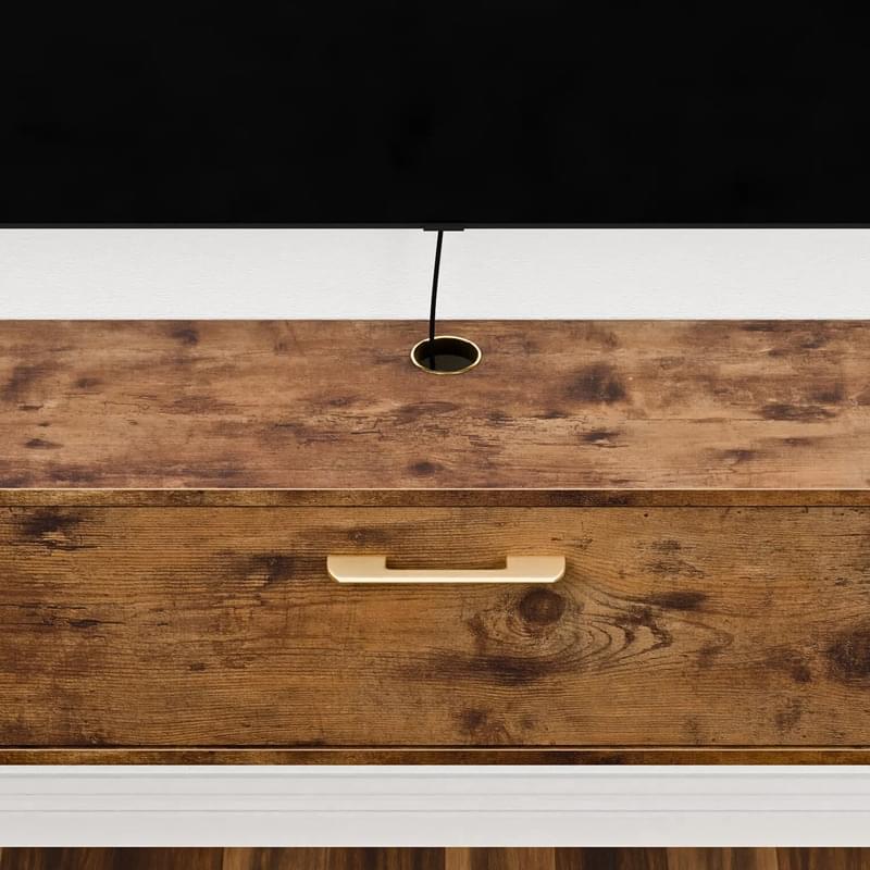 - Unique Farmhouse Style: A centralized media console features lightly textured weathered wood grain for a farmhouse aesthetic. Rounded corners and golden handle add a stylish and elegant touch.